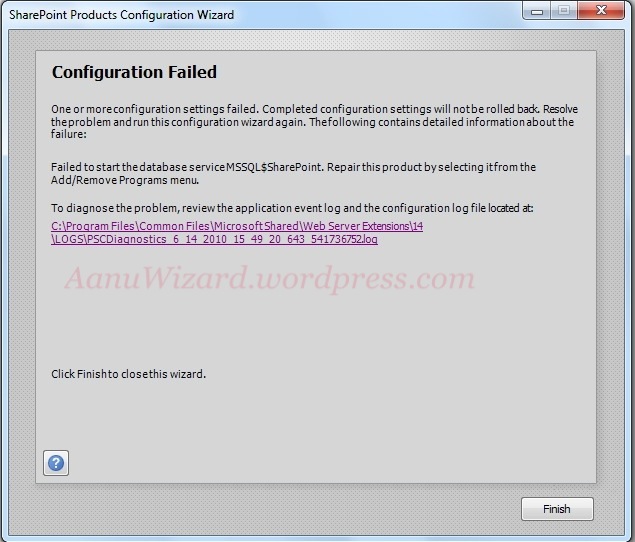 If you got above error then the MSSQL$SharePoint database service has not been created so to resolve this you could try repair option.
