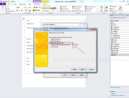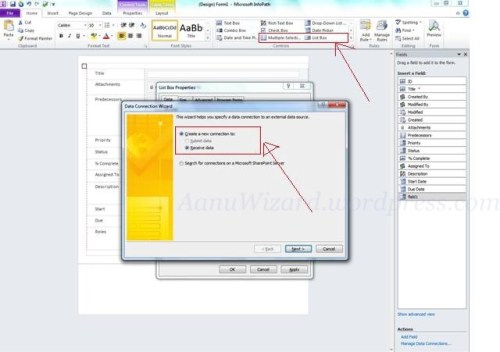 - Create Data Connection using Data Connection Wizard.