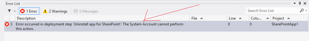 Error 1 Error occurred in deployment step ‘Install app for SharePoint’: The System Account cannot perform this action.