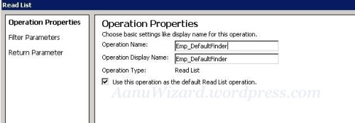 1) Setting default method for external entity created in SPD. Open SPD and edit your target (finder/updater/creator/delete) method/operation. Check the “Use this operation as the default finder/update … operation” and save it. This is always checked when you are creating new operation in SharePoint Designer.
